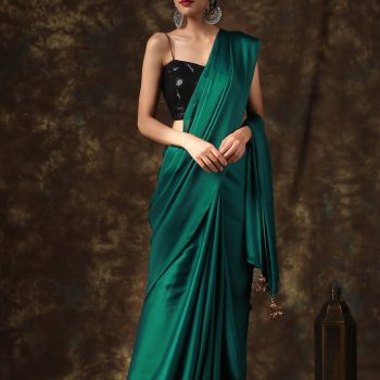 Rich Emerald Green Satin Saree with Bronze Pendants