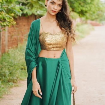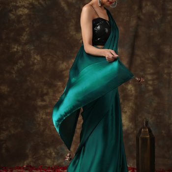 Fabric:- Rich Emerald Green Satin- It has a luxurious color and drape .