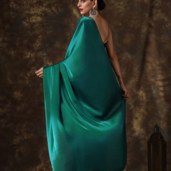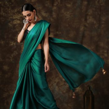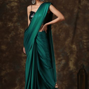 Rich Emerald Green Satin Saree with Bronze Pendants